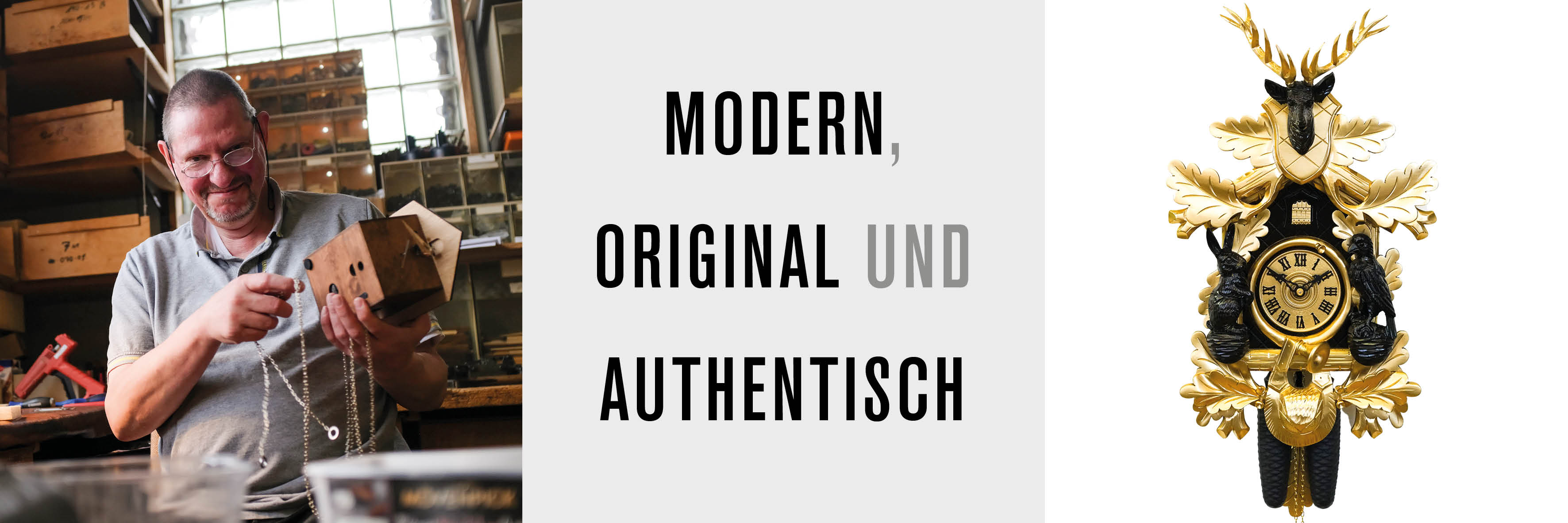 Original Schwarzwälder Kuckucksuhr (VdS-geprüft) mit mechanischem Werk. ORIGINAL Rombach & Haas (ROMBA-line) Design-Kuckucksuhr.- GRATIS DAZU: mechanische 1-Tag-Kuckucksuhr in schwarz (siehe Foto) - Mechanisches 8-Tage Laufwerk mit RechenschlagwerkVdS geprüfte ''Original Schwarzwälder Kuckucksuhr''Kuckuckruf abstellbar (Abstellhebel am Gehäuse)Kuckucksruf erfolgt zur vollen Stunde mehrmals (je nach Uhrzeit - z.B. um 3 Uhr kommt 3x der Kuckuck) und zur halben Stunde einmalig.Qualitätsmarke Romba-Design (Kuckucksuhrenmanufaktur Rombach und Haas)Lackierte Holz-Arbeit von Selina HaasTraditionelles Motiv: lebendige Tiere (Vogel und Hase), Blätter, HirschkopfHöhe: 51 cm (von Schnitzerei bis Geweihe)3 Jahre Garantie (24 Monate + 1 Jahr Garantieverlängerung GRATIS auf alle Uhren. Nur hier im Shop!)Bitte beachten Sie, dass die Farben am Bildschirm abweichen können!